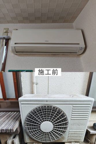 今回のご依頼主様は、北広島市内の戸建て住宅にお住まいの方です。10年以上使用されているHITACHI製のエアコンについて、設定温度を下げてもなかなか室内が冷えないというご相談をいただきました。