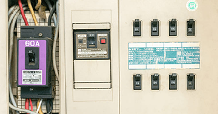 ブレーカーが上がらない、上げてもすぐ落ちる場合は、電気の使い過ぎか、漏電の可能性があります。また、ブレーカーそのものの不具合も考えられますので、点検をおススメします。
