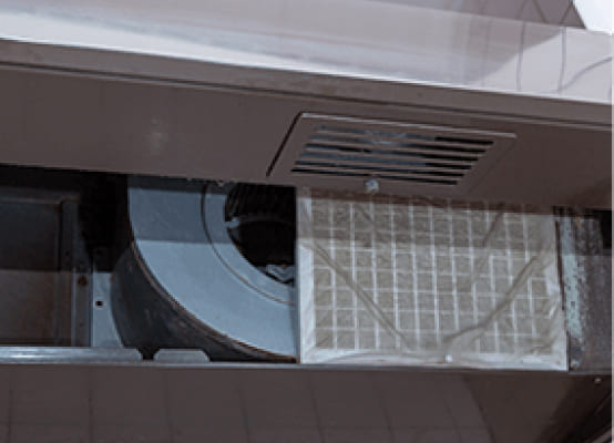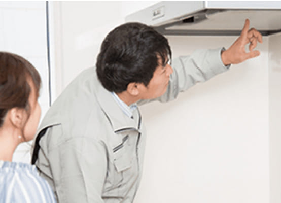 レンジフードの吸い込みが悪い、変な音がするといった場合は、まずは点検に伺います。点検と分解清掃で治る場合もあれば、修理が必要な場合もありますので、お気軽にご相談ください。